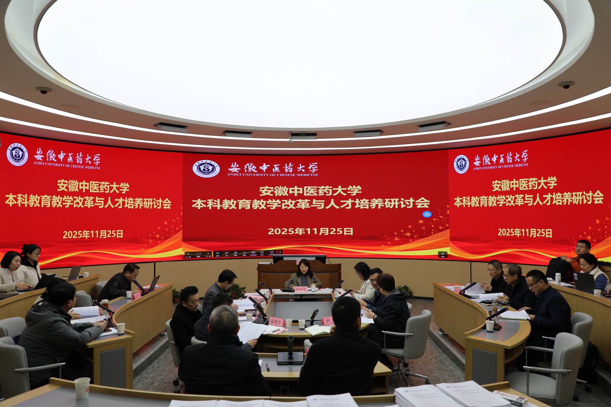 在研讨会上,教务处详细解读了《安徽中医药大学关于制定2026版本科人才培养方案的指导意见》,各学院汇报新增学士学位授予专业审核工作开展情况。与会专家就相关专业定位、特色凝练、社会对接等方面提出多项建设性意见。