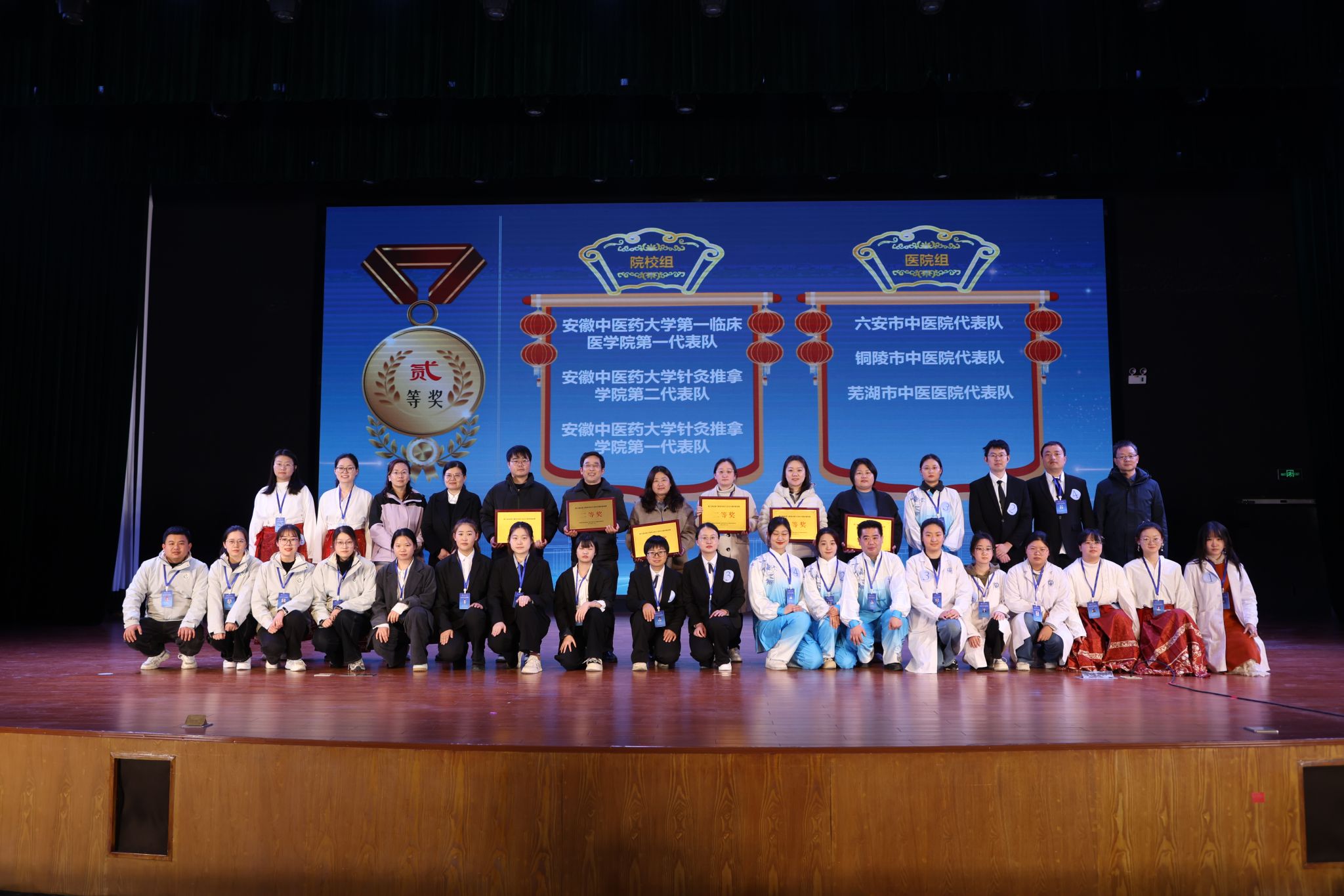 本次竞赛分为院校组和医院组,设置理论考试和现场赛两个环节,全面考察选手的经典积累、理解深度与实践转化能力。吸引了全省17支高校及医院队伍近百名选手参赛。经过多轮紧张激烈的角逐,学校新安书院代表队、中西医结合学院第一代表队以及第一附属医院第一、第二代表队分别获得院校组和医院组一等奖并成功晋级华东赛区区域赛。
