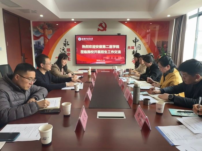 3月13日下午,安徽第二医学院教务处处长朱霖、学生处处长胡艳一行6人莅临我校,就专升本招生考试组织工作开展专题调研,教务处处长尹刚主持会议。教务处副处长周晴、考务科、招生科相关工作人员参加座谈。