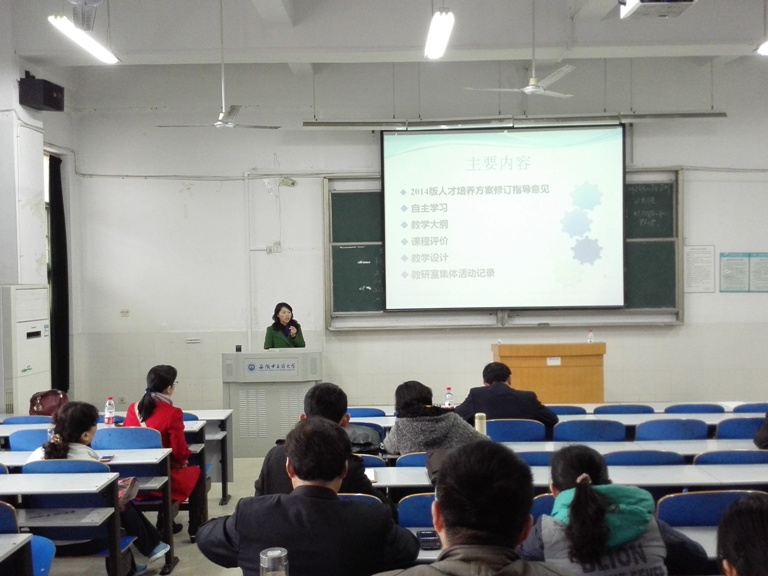 药学院副院长桂双英结合观摩兄弟院校专业认证的经验和亲身体会,从中药学专业人才培养方案的修订、自主学习环节的实施、教学大纲、课程评价、教学设计和教研室集体活动记录等环节,对中药学专业认证的相关要求和注意事项进行了详细介绍。
