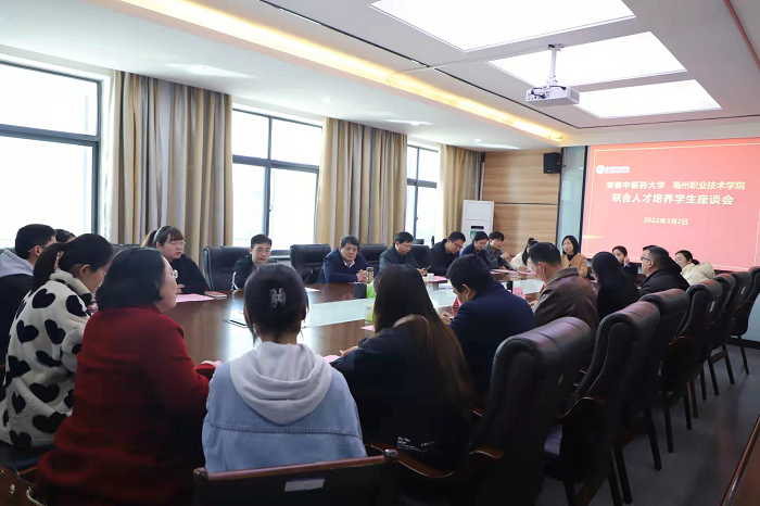 为进一步规范和加强我校专升本联合培养工作,确保人才培养质量,3月2日上午,学校党委常委、副校长许钒带领教务处、学生处、药学院、护理学院等部门赴亳州职业技术学院调研专升本联合培养研讨会。亳州职业技术学院党委副书记、院长周美启主持召开调研会。该校副院长刘传义,学生处、教务处、招生就业中心、药学院、医学院等部门负责人参加会议。