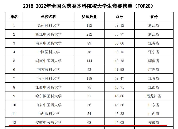 3月22日,中国高等教育学会高校竞赛评估与管理体系研究专家工作组发布《2022全国普通高校大学生竞赛分析报告》(以下简称《分析报告》)。我校在《2018-2022年全国医药类本科院校大学生竞赛榜单(TOP20)》中位列第12位,较上一年度排名提升3位。