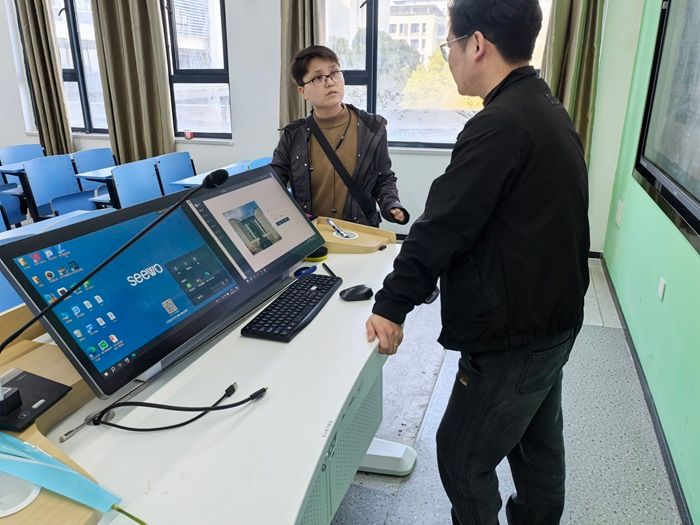 本次培训采用线上线下相结合形式开展,专业技术人员通过理论讲解、现场演示等形式对与会教师进行培训指导,内容涵盖智慧教室介绍、设备操作、教学软件应用等。