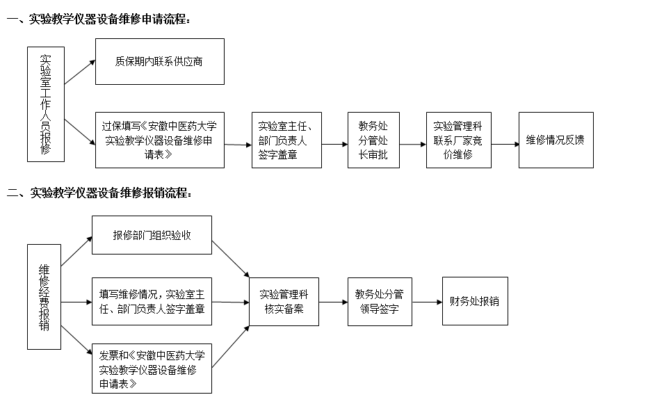安徽中医药大学实验教学仪器设备维修申请、报销流程