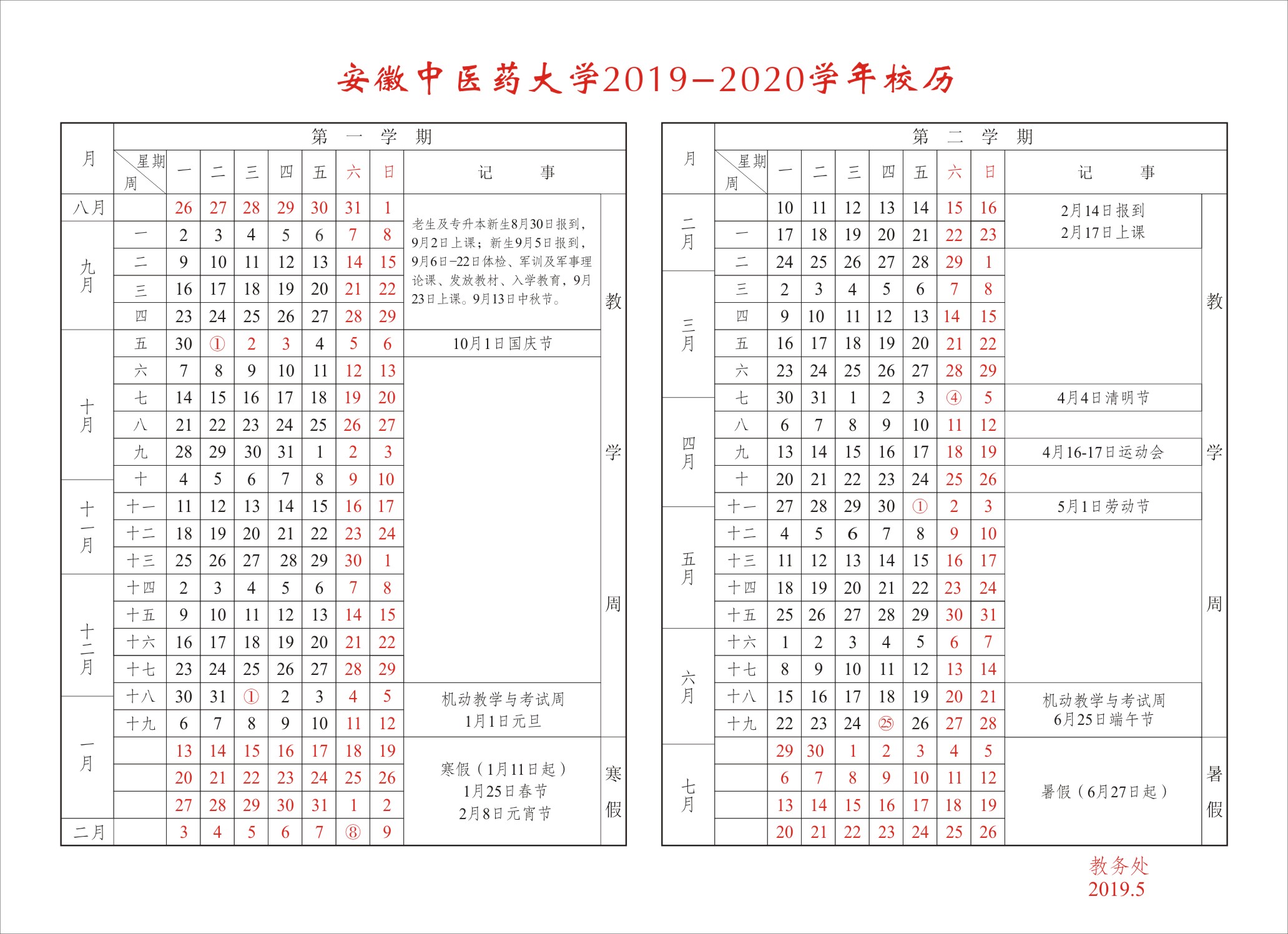 2019-2020学年教学校历已通过校长办公会审定,现予以发布。