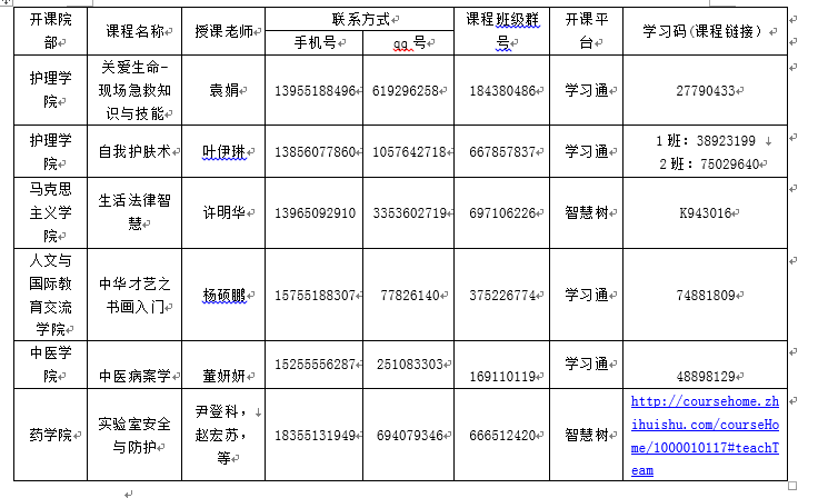 日前完成开课,课程负责人应认真组织选课学生上课、在线答疑及课程考核。学生可通过以下方式与授课老师取得联系并参加学习。